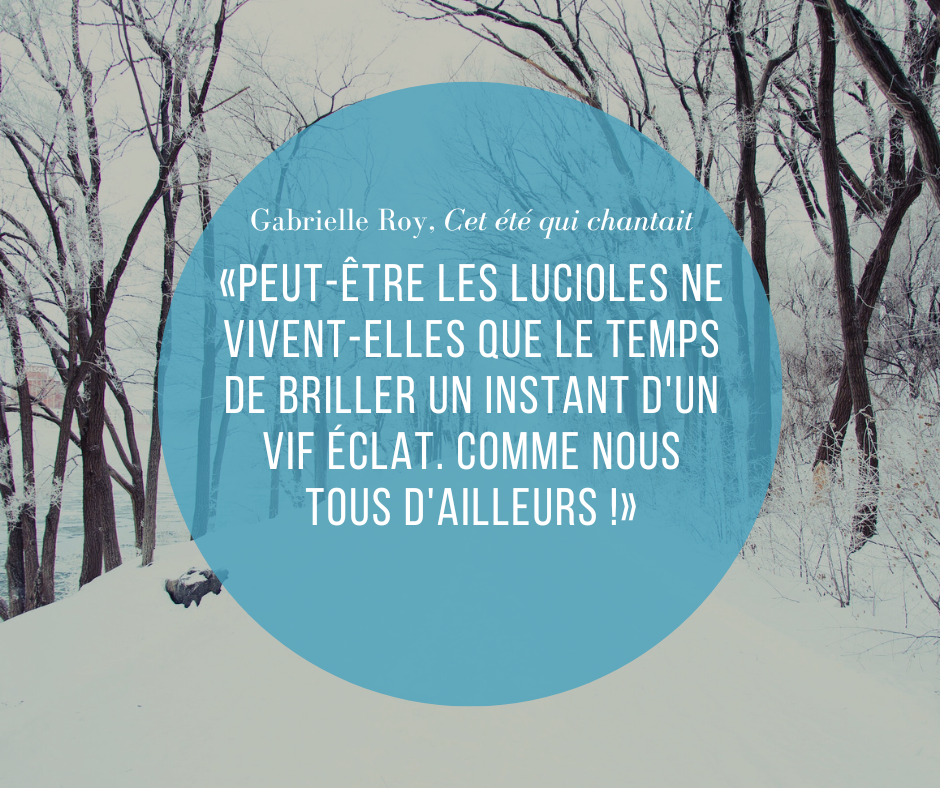 Je vous laisse avec cette très belle citation de Gabrielle Roy :
